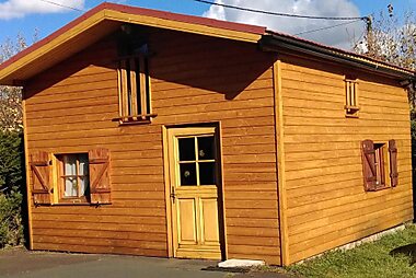 30 miles from Cantal Auvergne Stadium in Mauriac, Gîte chalet bois avec spa privatif features accommodations with access to a hot tub and…