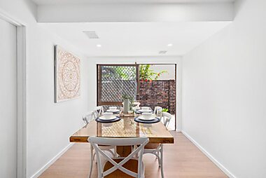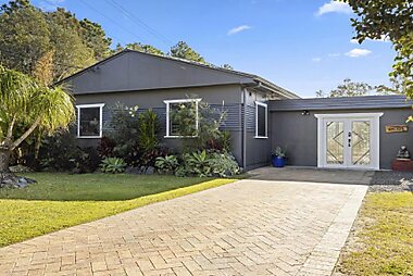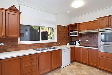Located in Coffs Harbour, Diggers Beach Cottage features large timber french doors that open out into a private garden with barbecue.