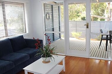 Set in Inverloch in the Victoria region, Bask at The Glade, 3 Bedroom, WiFi, Linen - Rejuvenate Stays has a patio and spa bath.