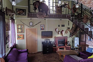 Дом охотника у реки рядом со Старой Руссой is located in Shakhovo and offers a fitness centre, a garden and a terrace.