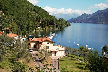 Boasting panoramic views of Lake Como and a private garden with patio, Villa Panorama is a semi-detached house in Limonta.