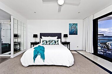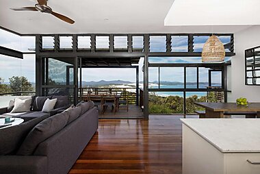 Hilltop Hideaway is a newly built 5 bedroom holiday home with stunning 180 degree bay, sea and hinterland views.