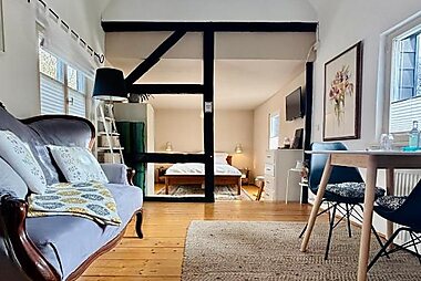 This luxury cottage-style holiday home offers a private south-facing terrace overlooking scenic meadows and the River Rhine.