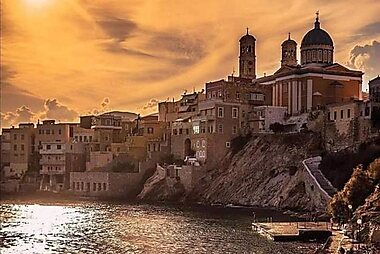 Οffering panoramic views over the Aegean Sea, Veranda Syros House is a neoclassical mansion located in Ermoupoli.