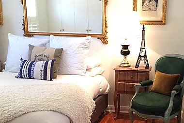 Nestled within lovely gardens, this restored 1856 2-bedroom cottage boasts free parking.
