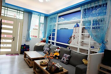 Boasting a balcony with mountain views, a garden and barbecue facilities, Blue and White Style Holiday B&B can be found in Guanshan, close…