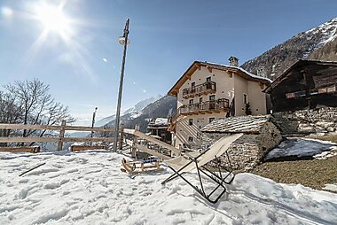 Rifugio Baita Belvedere offers a cozy atmosphere and traditional Aosta Valley cuisine.