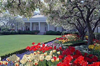 The White House Rose Garden is a garden bordering the Oval Office and the West Wing of the White House in Washington, D.C., United States.