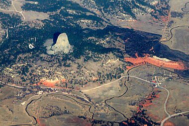 Devils Tower is a butte, possibly laccolithic, composed of igneous rock in the Bear Lodge Ranger District of the Black Hills, near Hulett…