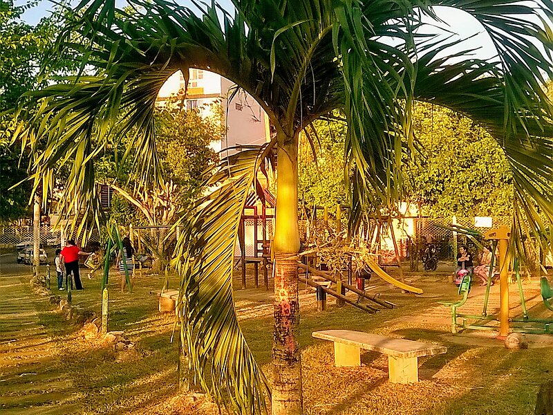 Adonidia merrillii, the Manila palm, is a palm tree species native to the Philippines, Malaysia, and is reportedly naturalized in the West Indies. It is commonly known as the "Christmas Palm" because its fruits become bright scarlet and tend to be that color in winter. This palm is typically fairly small and slender, normally attaining 15–25 feet in height but has attained 36 feet grown in greenhouse conditions.