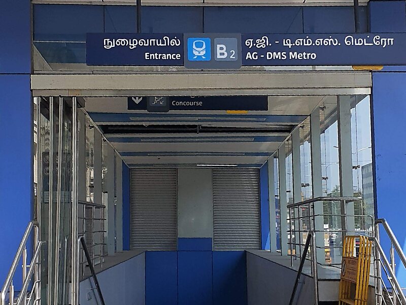 AG – DMS metro station is a Metro railway station on the Blue Line of the Chennai Metro. The station is among the underground stations along corridor I of the Chennai Metro, Wimco Nagar–Chennai International Airport stretch. The station serves the neighbourhoods of Teynampet and T. Nagar.