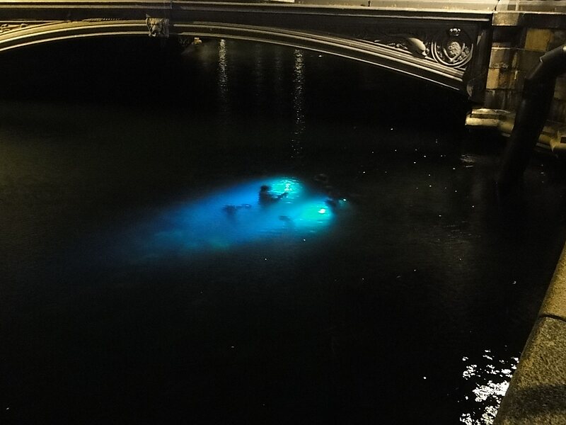 Agnete and the Merman is a group of bronze sculptures in Copenhagen, Denmark, located underwater in the Slotsholm Canal next to the Højbro Bridge. It has been referred to as one of the least-known works of art in Copenhagen. The sculptures were made in 1992 by the Danish sculptor, photographer, and author, Suste Bonnen. They portray a merman and his seven sons with outstretched arms, begging Agnete to return home. Three other sculptures of merfolk are located in Copenhagen: the "Black Diamond Mermaid", a copy of Anne Marie Carl-Nielsen’s 1921 statue; a large granite mermaid located on the port-of-call cruise ship dock in Copenhagen; and the famous Little Mermaid statue, located on the water’s edge along Langelinie promenade.