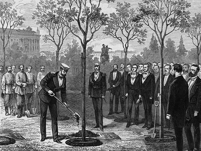 The Alexander Garden lies along the south and west façades of the Russian Admiralty in St. Petersburg, parallel to the Neva River and Admiralty Quay, extending from Palace Square in the east to St. Isaac's Cathedral in the west. The English park is named after Alexander II of Russia who ordered some 52 species of trees to be planted there. It was formerly known as the Admiralty Boulevard, the Admiralty Meadow, and the Labourers Garden.