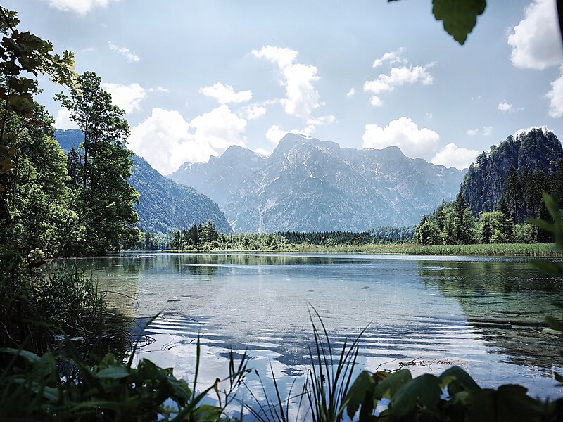 Almsee, English sometimes Lake Alm, is a lake in Upper Austria's part of the Salzkammergut in the Almtal valley, 11 kilometers south of the village of Grünau im Almtal. The lake lies in the northern portion of the Totes Gebirge mountains and is about 2.3 kilometers by 700 meters wide.The lake drains through the Alm River. Since 1965, the area around the Almsee is under nature conservation. Konrad Lorenz made important observations of the greylag goose at the lake.