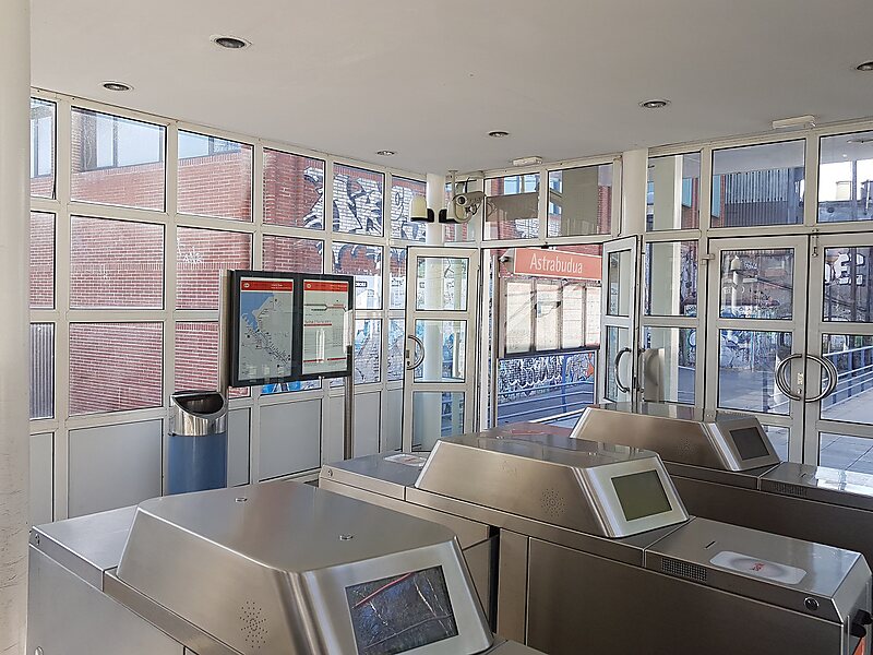 Astrabudua is a station of line 1 of Metro Bilbao. It is located in the neighbourhood with the same name, in the municipality of Erandio. It was opened on 11 November, 1995. The station is located next to a fare-free parking.