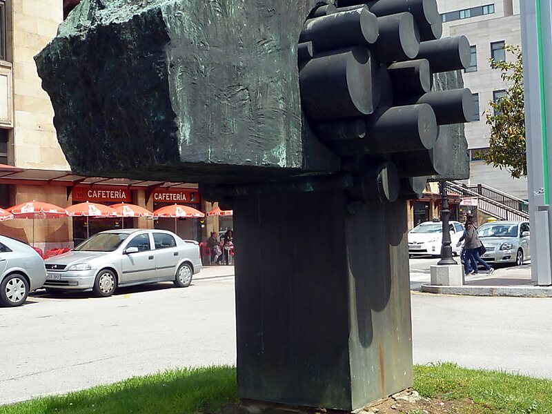 The urban sculpture known by the name of Asturias is located in calle Uría, in front of the railway station, in the city of Oviedo, Principality of Asturias, Spain. It is one of over a hundred sculptures that adorn the streets of that city.The sculpture, executed in coal and steel, is the work of José Noja, and dates from 1991. It was commissioned from Noja by the rail company Renfe, which sought a work of art to adorn the rail station of Oviedo. This large-scale work is intended as a homage to the Principality of Asturias, and so it incorporates materials such as coal that are characteristic of Asturian industry.