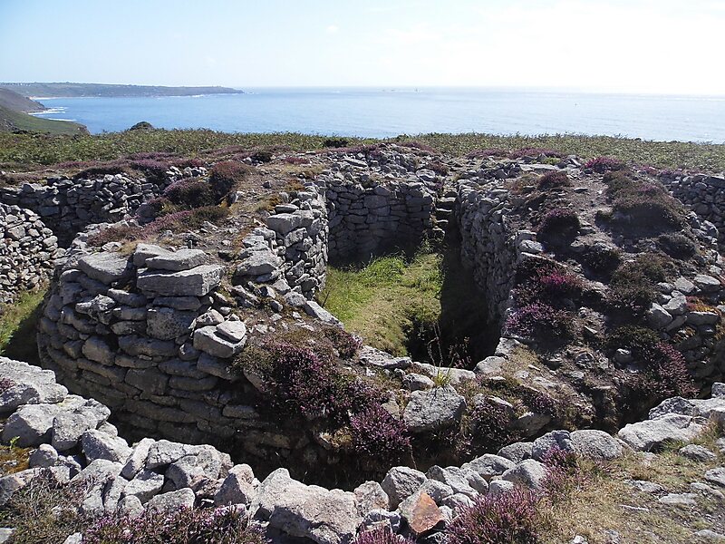 Ballowall Barrow is a prehistoric funerary cairn which Ashbee and Hencken state contains several phases of use from the Neolithic to the Bronze Age. It is situated on the cliff top at Ballowall Common, near St Just in Cornwall, England, UK. It is also known as Carn Gluze Barrow.