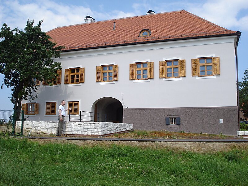 The manor is a one-storey building, designed in L-shaped ground plan, with the quite simple outside frontage of rhythmically aligned windows. There is an arcade entrance beneath the west wing of the manor. Over the past few years, Banfi has been undergoing a thorough renovation.