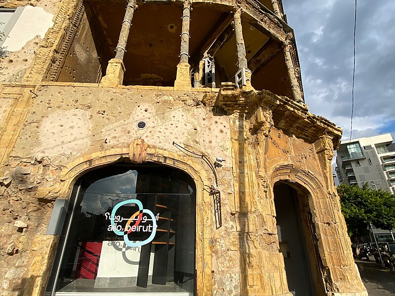 Bayt Beirut is a museum and urban cultural center celebrating the history of Beirut and namely the civil war. The cultural center is in the restored Barakat building, also known as the "Yellow house", a historic landmark designed by Youssef Aftimus.