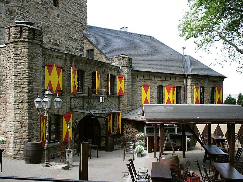 Blankenstein Castle is a castle located on the south side of the river Ruhr in Hattingen, North Rhine-Westphalia, Germany.May 12, 1226 Adolf I, Count of the Mark, gave the order to build the castle. He charged Truchsess Ludolf von Bönen with its construction, beginning in 1227. The castle was ready in 1243, but further developed over the course of 200 years by the Counts of the Mark. By 1425, Blankenstein was one of the most important castles in the county. In 1614, shortly before the Thirty Years' War, it was occupied by Spanish troops. From 1637, the castle fell into disrepair so that, in September 1662, Frederick William, Elector of Brandenburg ordered its demolition. Only the tower and parts of the curtain wall remained.