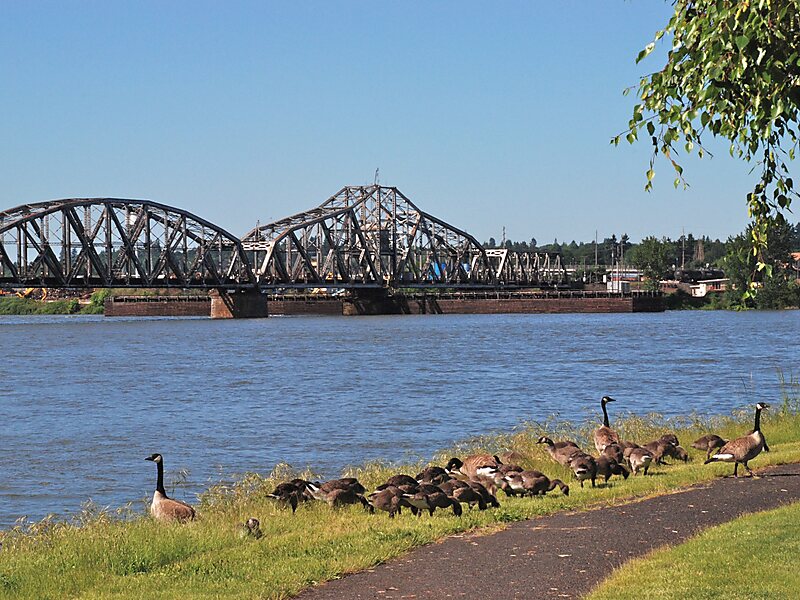 The 2,807-foot-long bridge has a swing span, which pivots on its base to allow for the passage of taller ships. The bridge carries two railroad tracks, which are used by BNSF, Union Pacific Railroad, and Amtrak. It is one of only two surviving swing-span bridges in the Portland metropolitan area, which once had several bridges of that type.