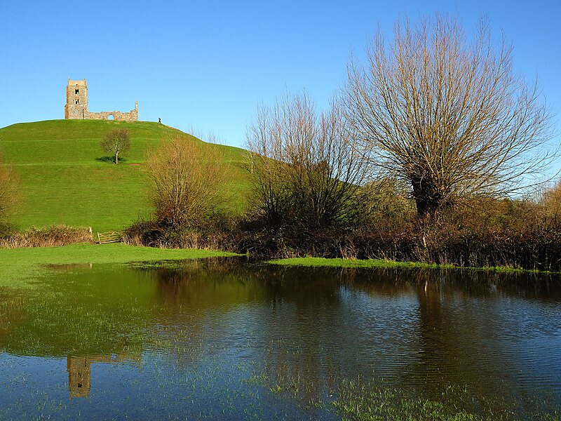 The hill stands at a strategic location overlooking the point where the River Tone and the old course of the River Cary join the River Parrett. Although there is some evidence of Roman visitation, the first fortification of the site was the construction of a Norman motte. It has been called King Alfred's Fort, however there is no proof of use by Alfred the Great. A medieval church was built on the hill in the 15th century. The current ruined church on top of the hill was built in 1793. The land and ruin were donated to the National Trust in 1946 as a war memorial.