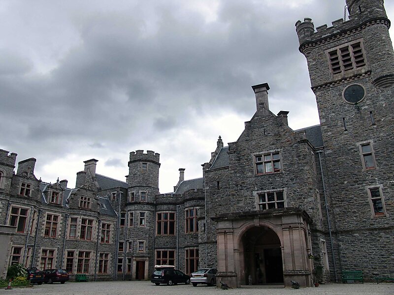 The castle is in the Scottish Baronial style, it has 365 windows, is 41,433 square feet and is protected as a category B listed building. The hostel closed for repair in 2011, and was put up for sale in 2014. Until its closure, the castle had a large collection of art, with some pieces dating back to 1680, as well as Italian marble statues. It was purchased in 2016 but offered for sale again in 2021; in 2022 it was again sold and is now a private residence.