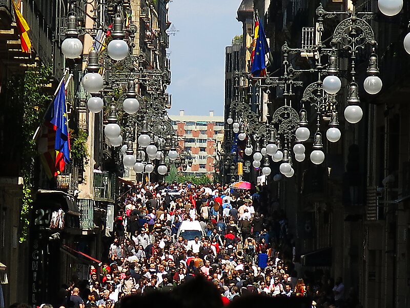 A long street with plenty of bars and restaurants. It used to be one of the most prominent streets in Barcelona, full of expensive shops with jewelry.