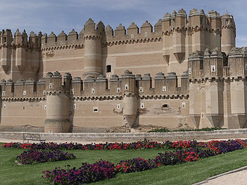 The Castle of Coca is a castle located in the Coca municipality, central Spain. The castle was constructed in the 15th century and has been considered to be one of the best examples of Spanish Mudejar brickwork which incorporates Moorish Muslim design and construction with Gothic architecture. A scale model of the castle has been built in the Mudéjar theme park and another replica built at a ratio of 1:25 is placed in the Minimundus miniature park in Klagenfurt, Austria.