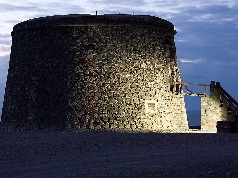 Defense tower “Torre del Tostón” is located in the coastal town of el Cotillo, which forms part of the municipality of la Oliva, Fuerteventura, Spain. This defense tower was recognized as historic-artistic monument in 1949. Nowadays, famous local artists use Torre del Tostón as exhibition room, and it's one of the island's main tourist destinations, including as viewpoint.