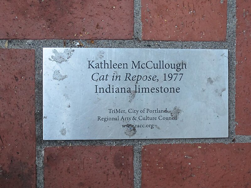 Cat in Repose, also known as Seated Cat, is a stone sculpture composed of Indiana Limestone, located on the Transit Mall of downtown Portland, Oregon, United States. Designed and created by Kathleen McCullough in 1977, the sculpture is currently installed near the intersection of Southwest Fifth Avenue and Southwest Morrison Street. Cat in Repose is part of the City of Portland and Multnomah County Public Art Collection courtesy of the Regional Arts & Culture Council.