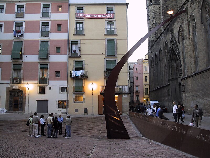 The Fossar de les Moreres is a memorial square in Barcelona, adjacent to the basilica of Santa Maria del Mar. The plaza was built over a cemetery where defenders of the city were buried following the Siege of Barcelona at the end of the War of the Spanish Succession in 1714. The plaza features a memorial to the fallen Catalans of the war, with a torch of eternal flame and a heroic poem by Frederic Soler, "El Fossar de les Moreres".