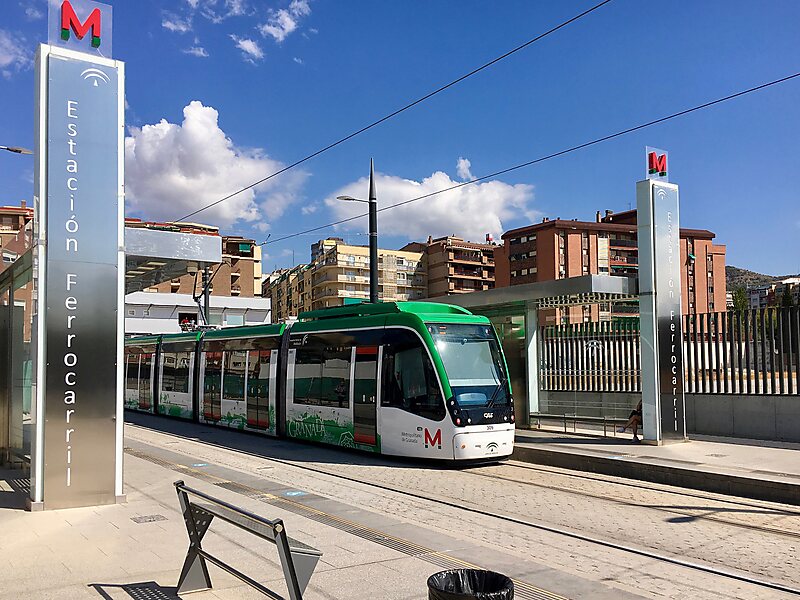 The Granada Metro is a single light rail line in the city of Granada, Spain and its metropolitan area. It crosses Granada and covers the towns of Albolote, Maracena and Armilla, with underground sections in central Granada and overground sections elsewhere. The line opened on 21 September 2017, and serves 26 stations, of which 3 stations in central Granada are underground.Construction of the line began in 2007. The metro was initially planned to open in early 2012, and by May 2011 the line was 73% completed. However, funding ran out as a result of the Spanish economic crisis, with only 250 million of the estimated 502 million euros total cost available. In 2012, the remaining funds were secured through a 260 million loan from the European Investment Bank. and the planned date of completion was moved to early 2014. However, further delays resulted in a shortfall in funding, which was only resolved on 1 July 2014.
