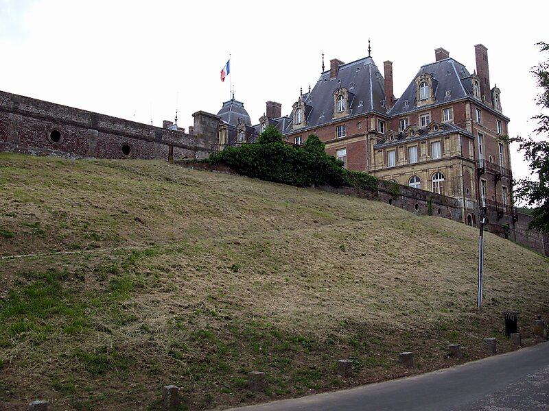 The Château d'Eu stands at the centre of the town and was built in the 16th century to replace an earlier one purposely demolished in 1475 to prevent its capture by the English. The chapel contains the tombs of Henry I, Duke of Guise, and his wife, Catherine de Clèves, who embarked on the construction of the château in 1578. The building was completed almost a century later by the Anne Marie Louise d'Orléans, Duchess of Montpensier, la Grande Mademoiselle.