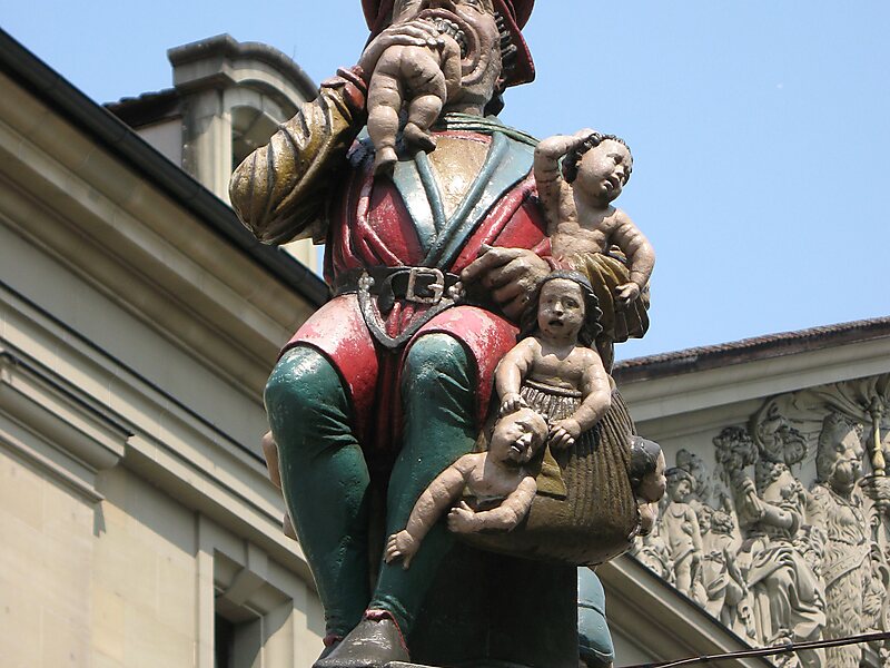 The Kindlifresserbrunnen is a painted stone fountain at the Kornhausplatz in Bern, Switzerland. It is one of the Old City of Bern's fountains from the 16th century.