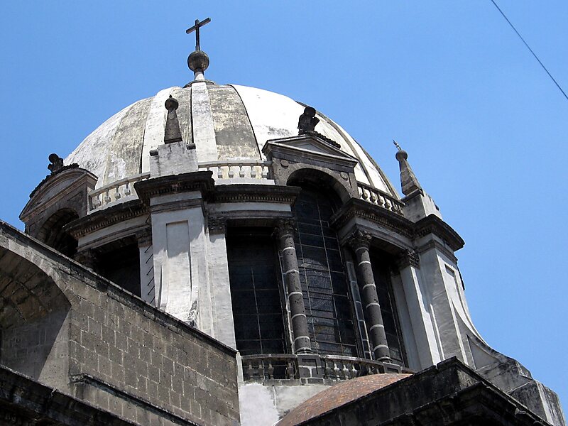 The Nuestra Señora de Loreto Church in the historic center of Mexico City was the last major church constructed during the colonial period. Constructed between 1806 and 1819, the church tilts significantly to one side due to being constructed of stone of two different weights. Loreto is one of a number of churches in the historic district that the Archdiocese of Mexico says is in imminent danger of being lost due to structural damage from the uneven sinking. In front of the church is a plaza named after the church which used to be the site of Mexico City's first synagogue.
