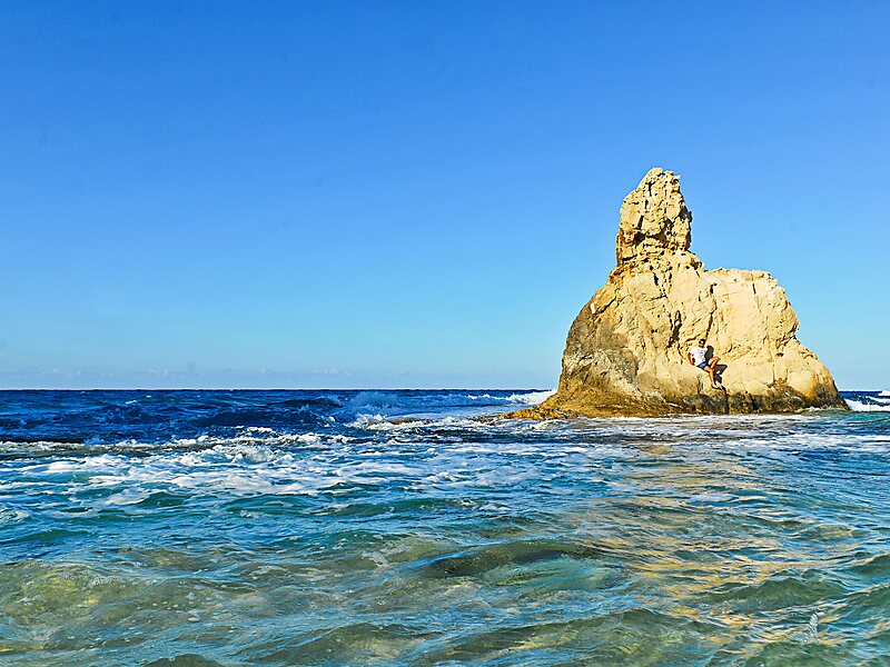 Believed to be the bathing place of Cleopatra and Marcus Antonius. The sea can be quite rough, so it is a popular spot for water sports.
