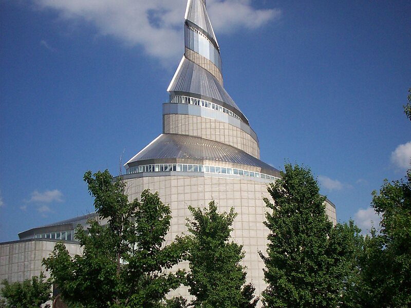 The Temple in Independence, Missouri, is a house of worship and education "dedicated to the pursuit of peace". It dominates the skyline of Independence, Missouri, USA, and has become the focal point of the headquarters of the Community of Christ The temple was built by the Community of Christ in response to a "revelation" presented to their 1984 World Conference by church prophet-president Wallace B. Smith. The revelation culminated instructions shared over the course of more than 150 years by prior prophet-presidents recognized by the Community of Christ. Groundbreaking for the temple took place Friday 6 April 1990, and the completed structure was dedicated on Sunday 17 April 1994.