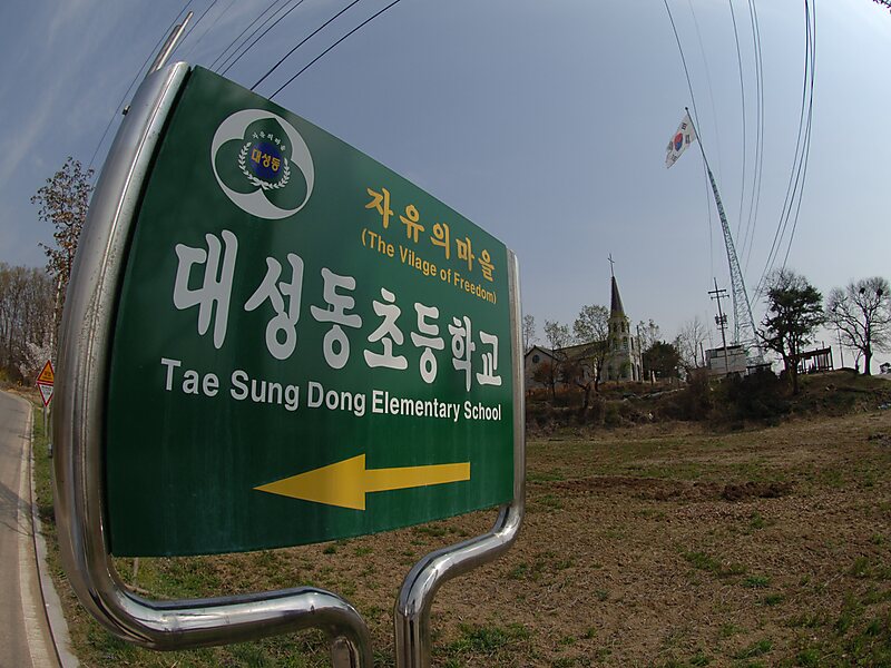 Daeseong-dong is a village in South Korea close to the North Korean border. It lies within the Korean Demilitarized Zone. The village is about 1.6 kilometers south of the Bridge of No Return, and 12 km from the city of Kaesong, North Korea. As of 2018, the village has 193 inhabitants.