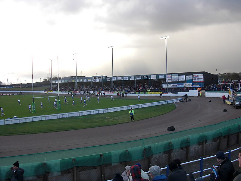 Derwent Park is a Rugby League Stadium and former motorcycle speedway in Workington, England situated beside the Cumbrian River Derwent. It is used mostly for rugby league matches and is the home stadium of Workington Town who play in League 1 the 3rd tier of the British rugby league system. Derwent Park has a capacity of 12,000 people with 1,200 seats and the pitch is surrounded by a 398 yards motorcycle speedway track.