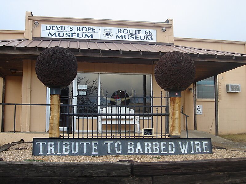 The Devils Rope Barbed Wire Museum is a museum located in McLean, Texas, United States. The museum was officially opened in 1991 and focuses on barbed wire and its history. The museum is thought to have the largest collection of published material concerning barbed wire.The Devil's Rope Museum is housed in a converted brassiere factory and is dedicated to the history of barbed wire, fencing tools, and ranching heritage. Features exhibits and collections from private wire collectors from across the U.S, a reference library with extensive patent information for researchers and educators, a Dust Bowl exhibit, salesman samples, warfare wire, and a collection of road lore with artifacts dedicated to the Texas portion of Historic Route 66.