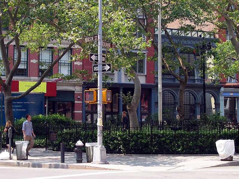 Duane Park is a small, triangular public urban park located in the diamond of the Tribeca neighborhood of Manhattan, New York City. The park is bordered by Hudson Street to the east and branches of Duane Street on north and south sides. It was originally laid out by Calvert Vaux.