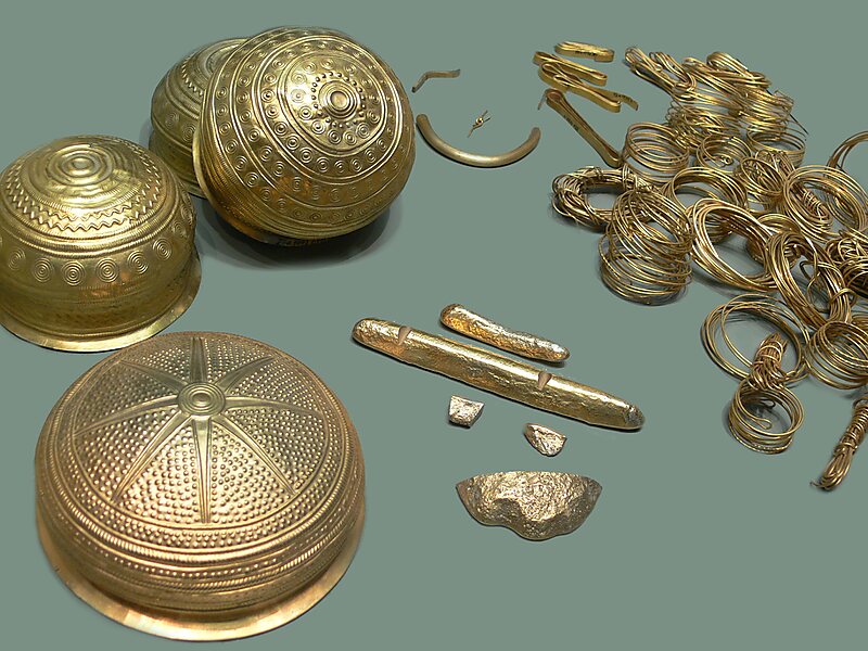The Eberswalde Hoard or Treasure of Eberswalde is a Bronze Age hoard of 81 gold objects with a total weight of 2.59 kg. The largest prehistoric assembly of gold objects ever found in Germany, it is considered to be one of the most important finds from the Central European Bronze Age, and is attributed to the Nordic Bronze Age culture. Today, it is in Russia, as part of the group of artifacts and works of art looted from Germany at the end of the Second World War.