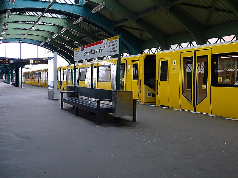 Eberswalder Straße is a Berlin U-Bahn station located on the line. The station is a raised iron structure on stone columns, designed by architect Alfred Grenander.