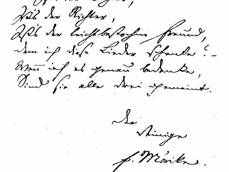 Eduard Friedrich Mörike was a German Lutheran pastor who was also a Romantic poet and writer of novellas and novels. Many of his poems were set to music and became established folk songs, while others were used by composers Hugo Wolf and Ignaz Lachner in their symphonic works.