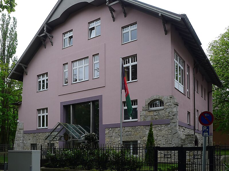 The Embassy of Afghanistan in Berlin is the diplomatic mission of the Islamic Republic of Afghanistan to Germany. Yama Yari has been the ambassador since February 3, 2021.The embassy is located in a country house at Taunusstraße 3 in the Berlin district of Grunewald in the Charlottenburg-Wilmersdorf district. The embassy site is on the corner of Kronberger Strasse 5. The consulate belonging to the embassy is located at this address. Afghanistan also maintains two Consul generals in Bonn and in Grünwald near Munich, in Bonn they emerged from the former seat of the embassy.
