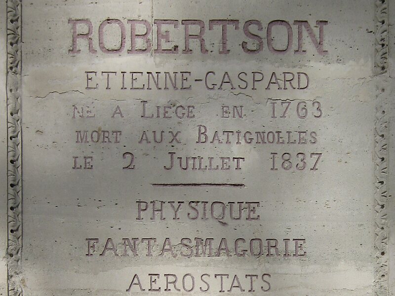 Étienne-Gaspard Robert, often known by the stage name of "Robertson", was a prominent physicist, stage magician and influential developer of phantasmagoria from the Prince-Bishopric of Liège. He was described by Charles Dickens as "an honourable and well-educated showman". Alongside his pioneering work on projection techniques for his shows Robert was also a physics lecturer and a keen balloonist at a time of great development in aviation.