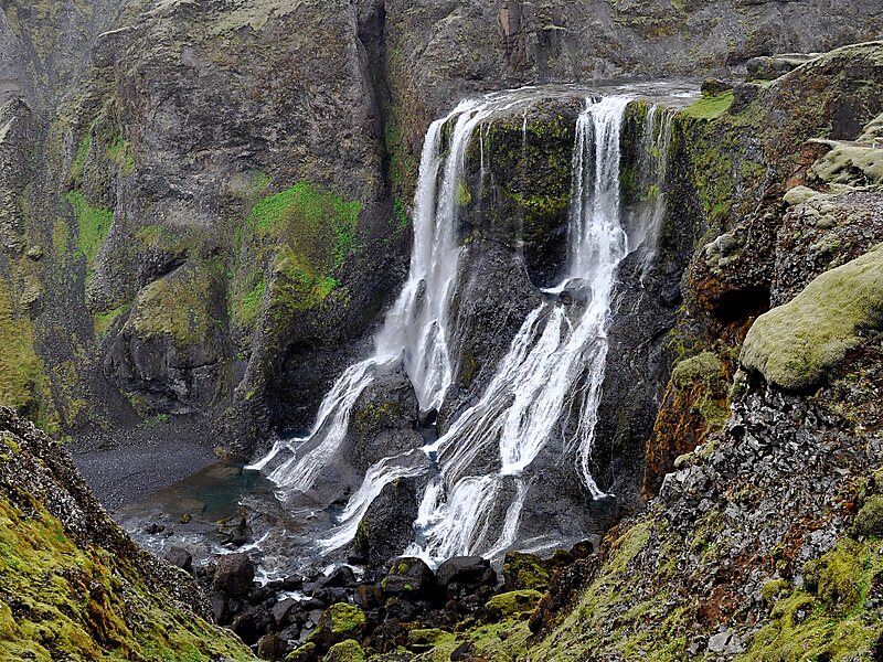 Fagrifoss is waterfall situated in Southeast Iceland near the Lakagígar region. It is located along the 4x4 road F206 approximately 24 km from Kirkjubæjarklaustur and 40 km from Laki. Access to the waterfall requires the crossing of a river ford, for which a 4x4 vehicle is needed.