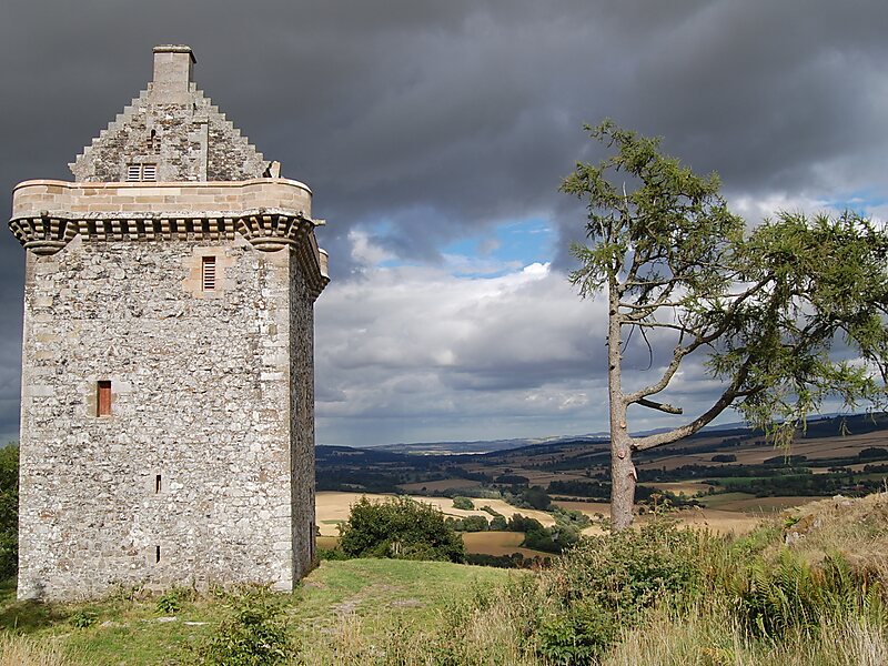 Fatlips Castle is a peel tower in Roxburghshire, in the Scottish Borders. Situated at the top of Minto Crags, above the River Teviot, it was built in the 16th century by the Turnbulls of Barnhills, notorious Border reivers, and owners of nearby Barnhills Tower and farm. In 1545, during the War of the Rough Wooing, the Earl of Hertford burned "Mantoncrake", or Mynto Crag.