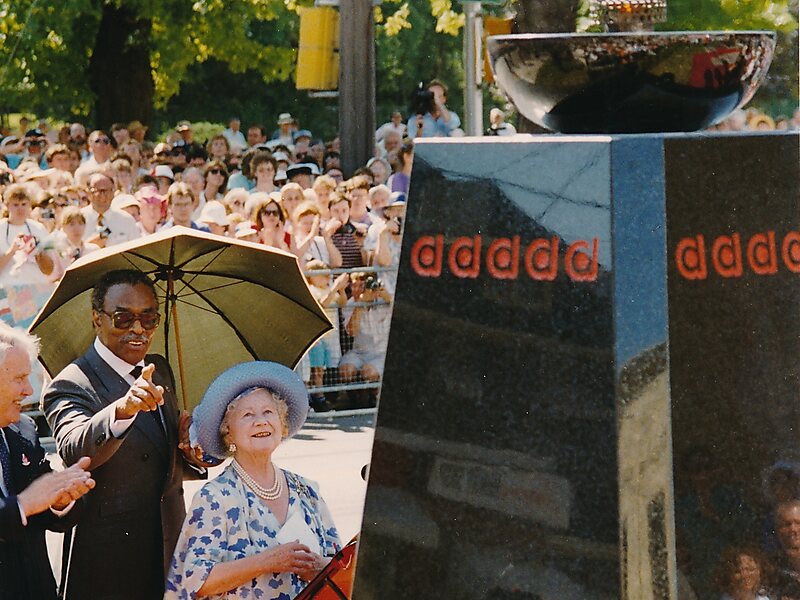 The Flame of Hope was kindled before 4,000 spectators by Her Majesty Queen Elizabeth the Queen Mother on July 7, 1989.